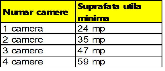 • Sunt eligibile apartamente cu suprafata utila mai mare sau cel putin egala cu valorile din tabelul de mai jos. Imobilele de tip apartament avand suprafata utila mai mica fata de cea din tabelul de mai jos, vor fi considerate imobile neeligibile.